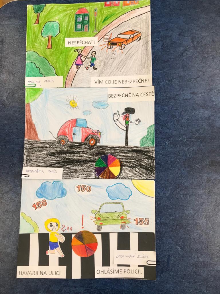 Tři žáci z naší družiny se zapojili v březnu do výtvarné soutěže "Bezpečně u dopravní nehody", vyhlášené městem Karlovy Vary. Doprava je velké téma dnes a denně. Zamysleli jsme se všichni společně jak se bezpečně na silnici chovat.
