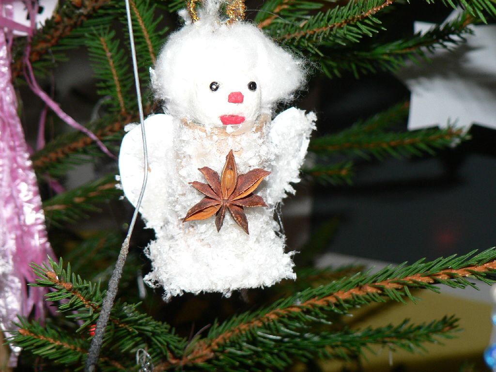 Několik fotografií vánočních ozdob, které vyrobily děti.