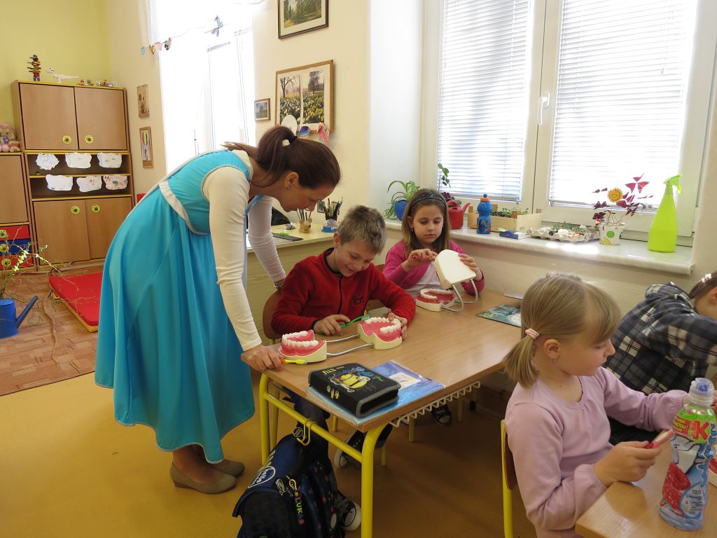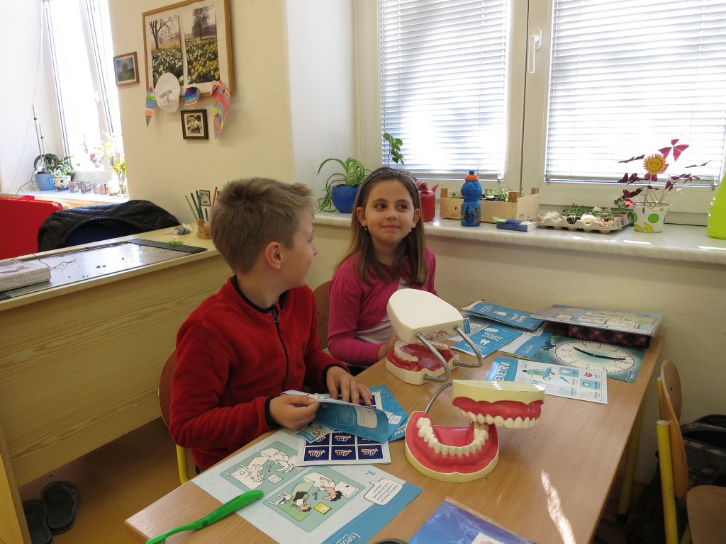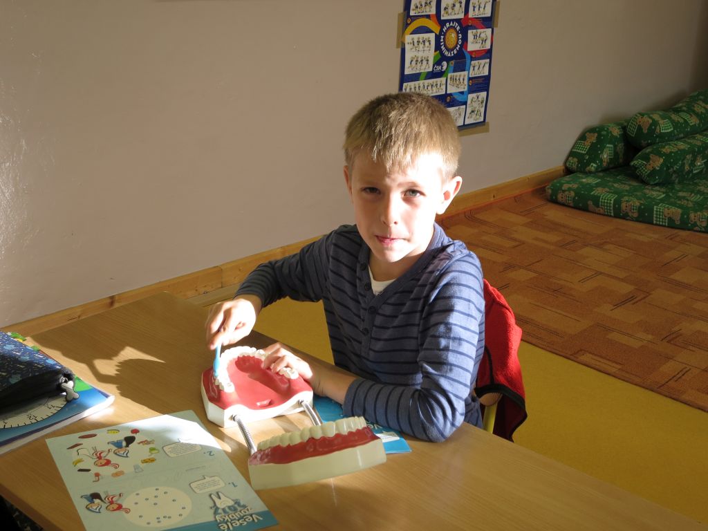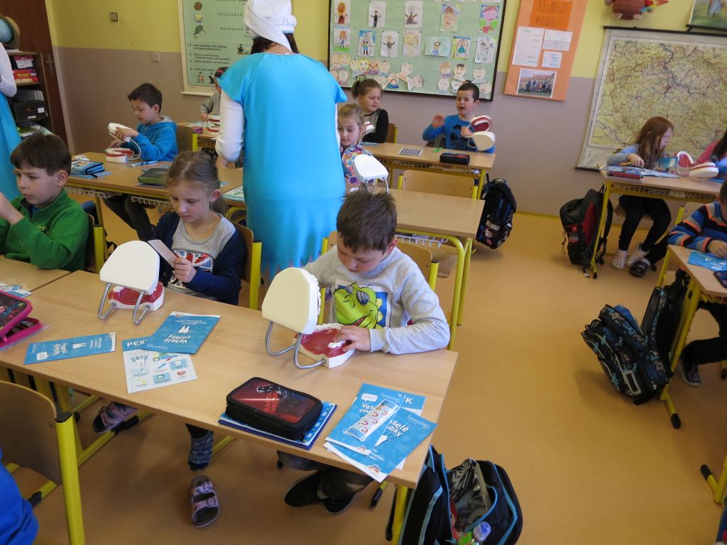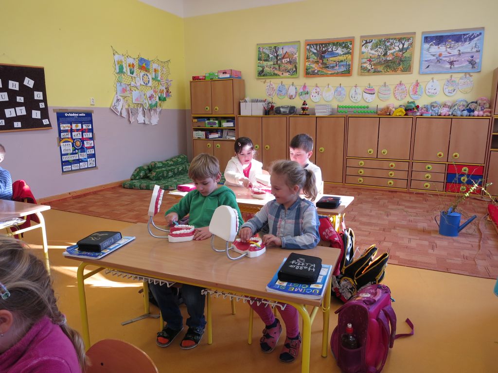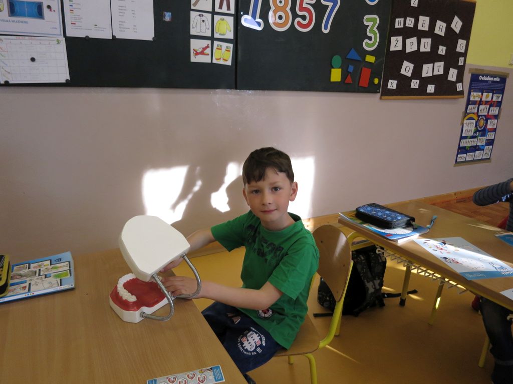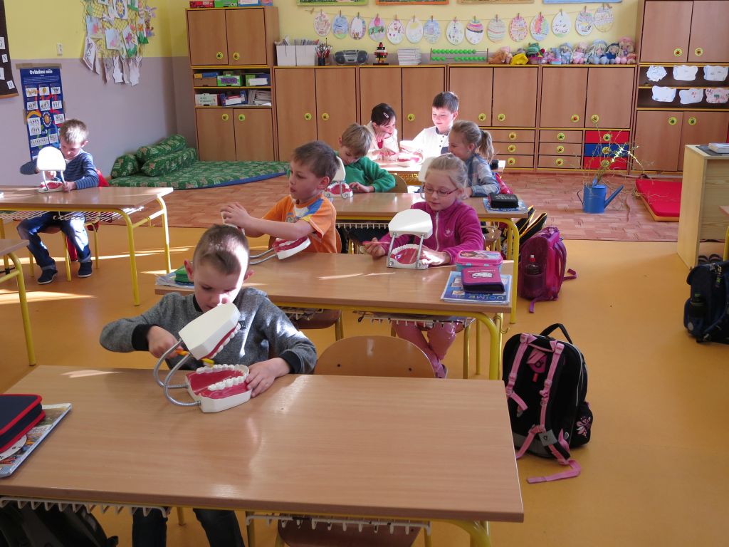 Naši nejmladší žáci se učili čistit správně zuby.